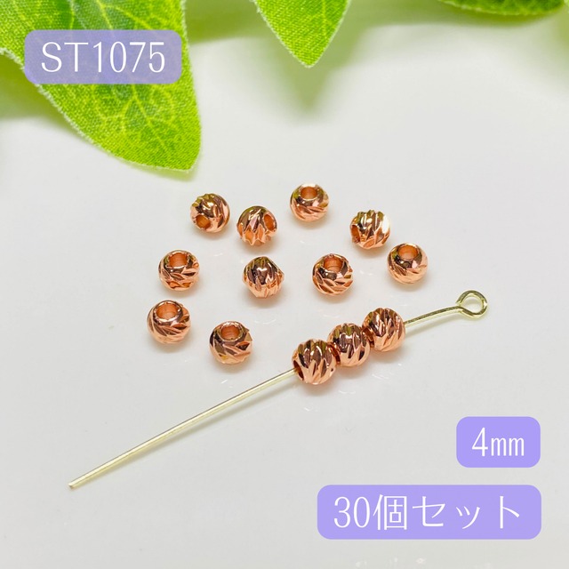 1062-★ステンレスビーズスペーサーローズゴールド★天然石アクセサリーパーツ ☆サイズ 約4mm 穴径1.2mm ☆色 ローズゴールド ☆数量 30個 [ST1062-] ----- 高品質なステンレスビーズスペーサーで耐久性に優れています。天然石とも相性が良く、ピアス、ネックレスなどアクセサリーパーツとして使用できます。人気商品で売り切れる場合もございます。 天然石のアクセサリー制作に最適なパーツです。ステンレス製で高品質な仕上がりが特徴。ブレスレットやピアスなどのアクセサリー制作にも活用できます。 手作りアクセサリーを楽しむ方に向けて、お手頃な価格でご提供しています。細かなディテールと輝きが、作品の仕上がりを引き立てます。自分だけのオリジナルアクセサリーを作りたい方におすすめです。