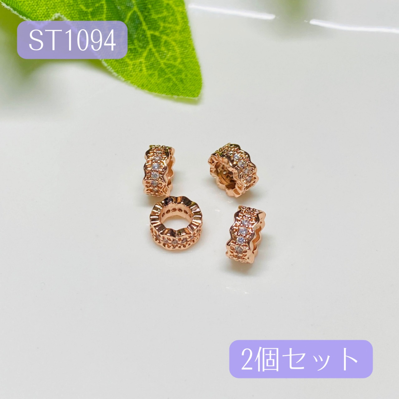 1094-★ メタルパーツ ジルコニア スペーサー ビーズ ロンデル 2個セット ★ 天然石 アクセサリー パーツ ハンドメイド パワーストーン ブレスレット ジルコニア チャーム